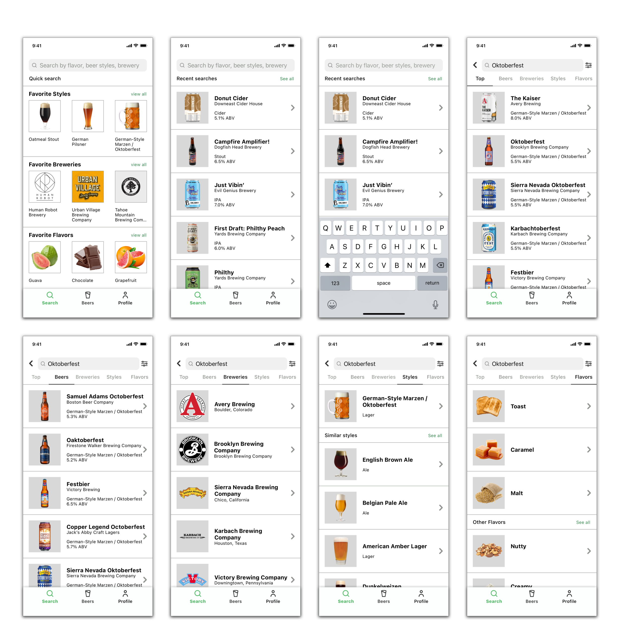 Overall, users seemed to navigate through the app fairly easily, with a few distinct problems to note. Almost all the users wanted to scroll on the home page. On the search page, users found a few differences between the homepage and the search homepage. While in the search results, the users questioned how some of the results shown would come up and that it seemed too complex. Many of the users, while looking at a beer product page, liked all the information present but wanted to know specifically the cost or if they could buy the beer.